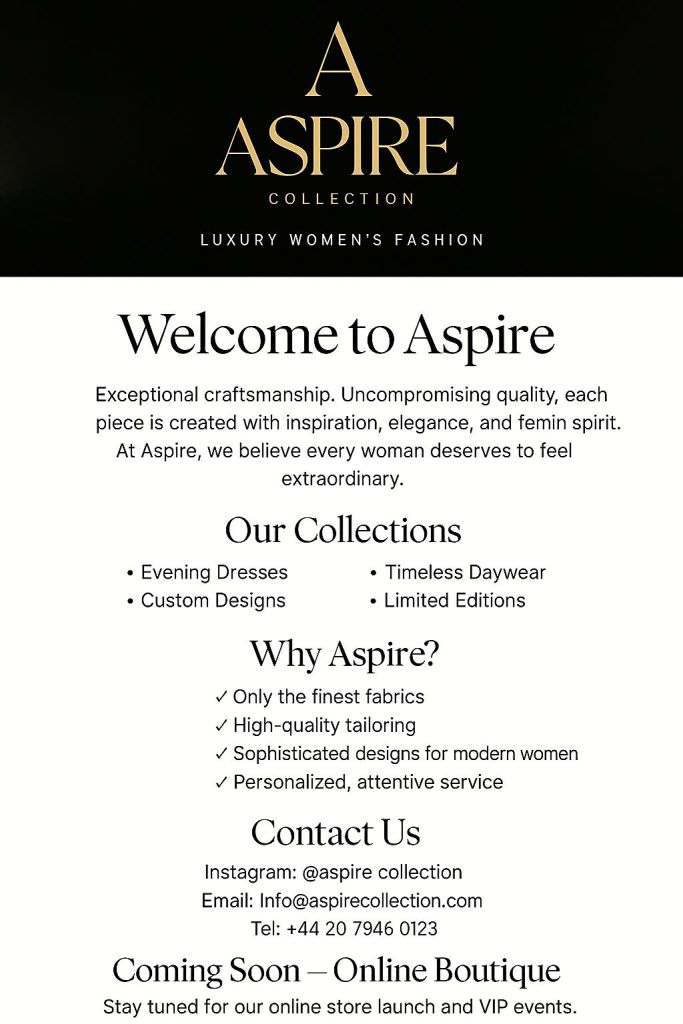 Welcome to Aspire — where elegance meets craftsmanship in every stitch.